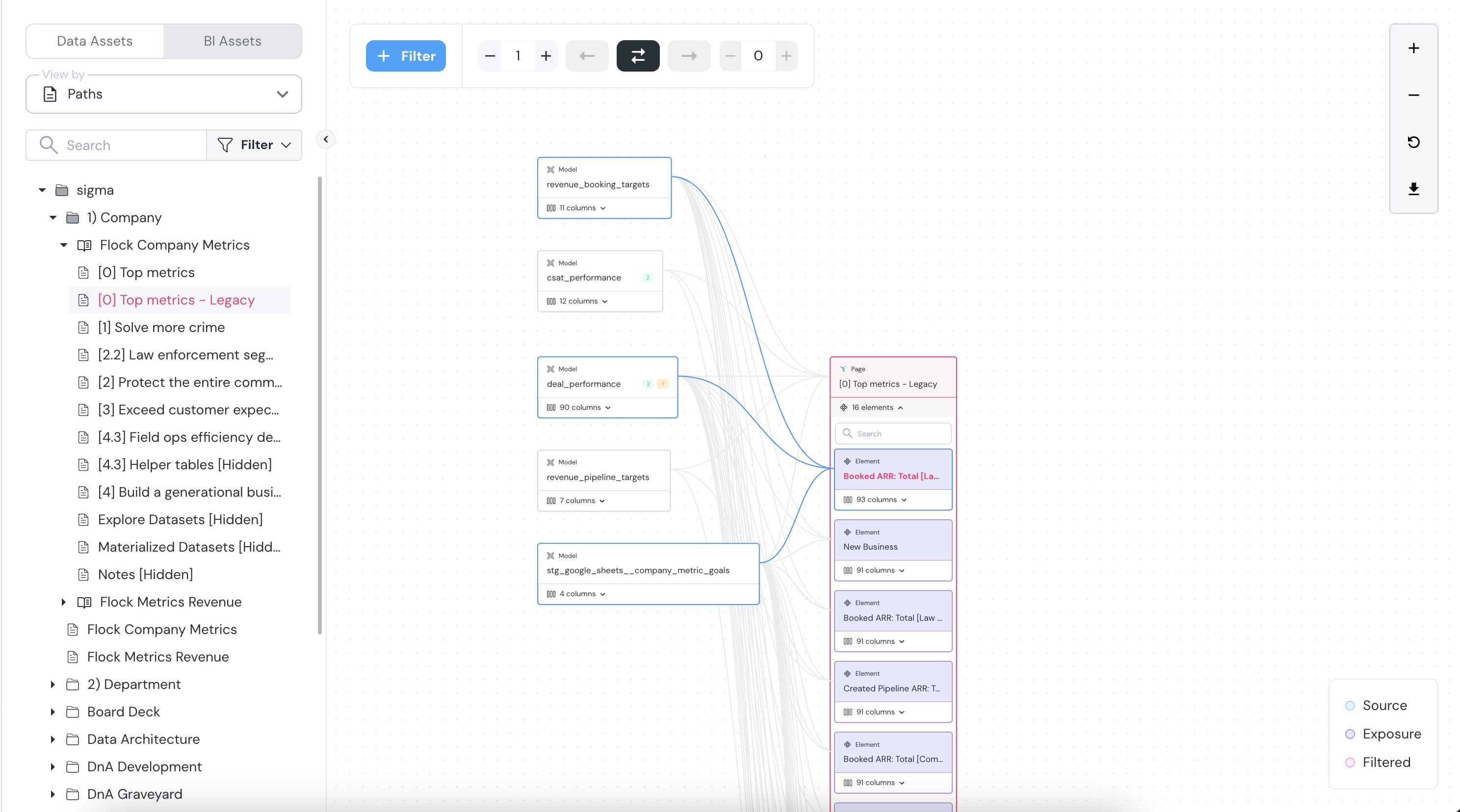 With this integration, Elementary automatically extends data lineage down to the workbook page and element level. This means you’ll have full end-to-end visibility into your data, making it easier to understand downstream dependencies, also known as exposures. Learn more about connecting to Sigma.