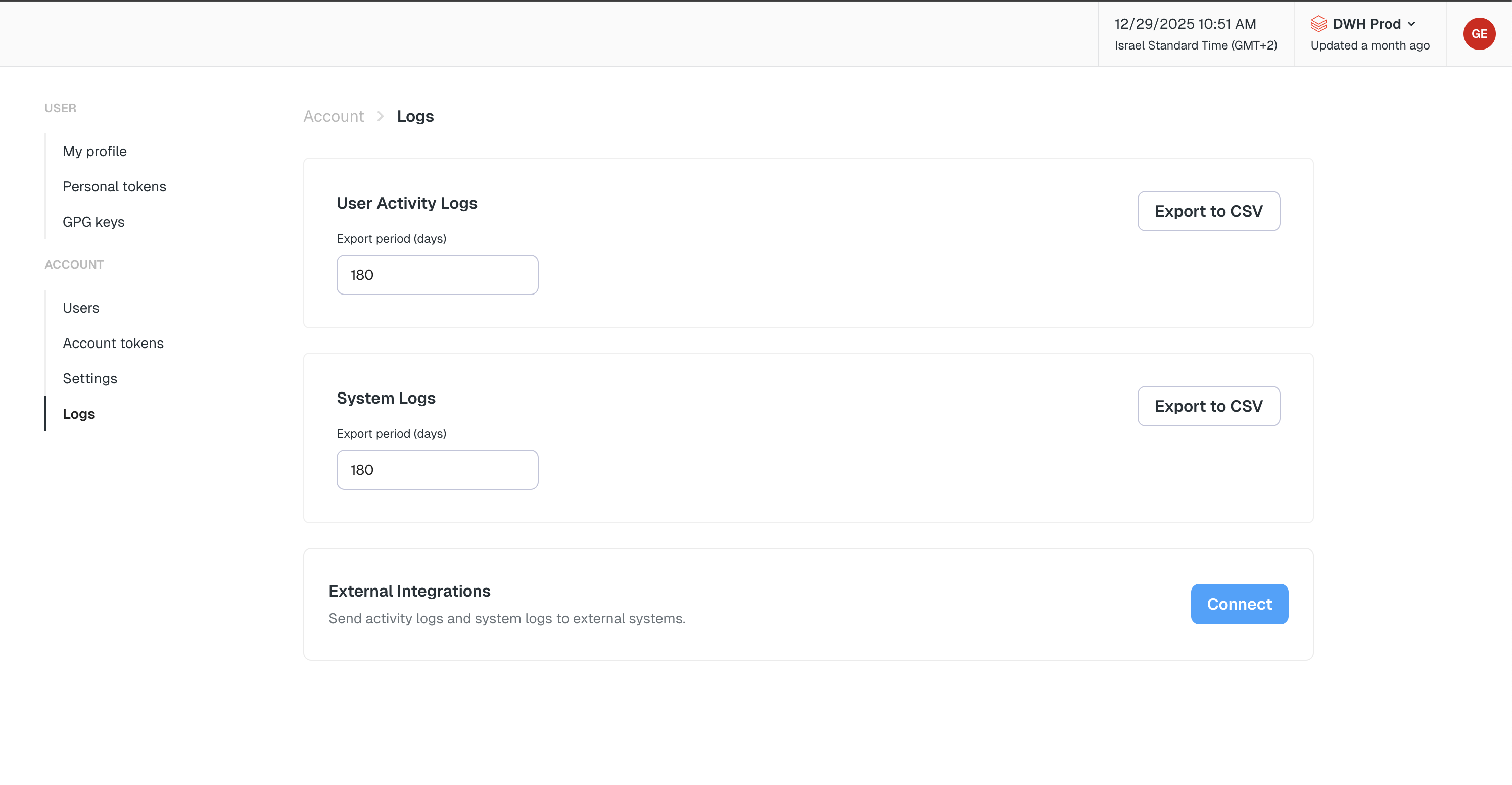In addition to exporting logs as CSV files, you can stream logs in real-time to external log management services for centralized monitoring, analysis, and long-term storage.Available Integrations