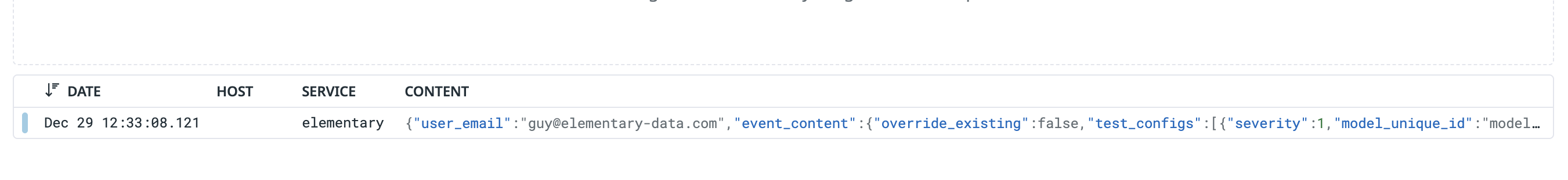 Once configured, logs will appear in your Datadog Log Explorer within a few seconds of being generated. You can filter logs using:source:elementary-cloud- All Elementary logslog_type:audit- User activity logs onlylog_type:system- System logs onlyaction:<action_name>- Specific action typesenv_name:<environment_name>- Logs from a specific environmentsuccess:false- Failed operations only